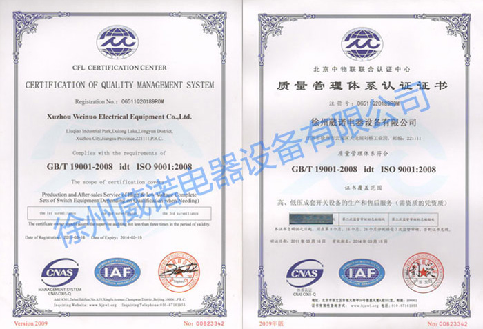 質(zhì)量管理體系認(rèn)證證書